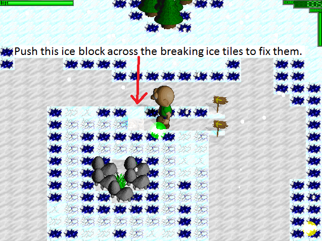 Like the North of 60 level, you need to push the wooden tile to "fix" the broken ice terrain tile to get through.