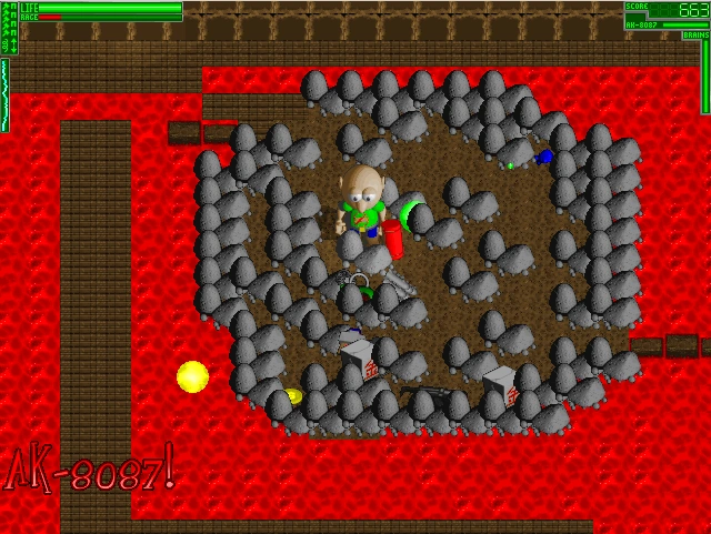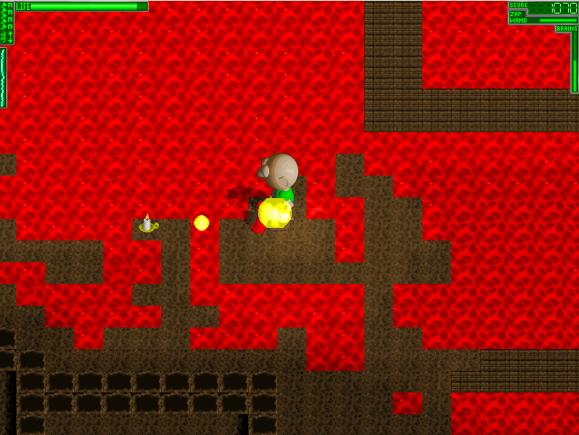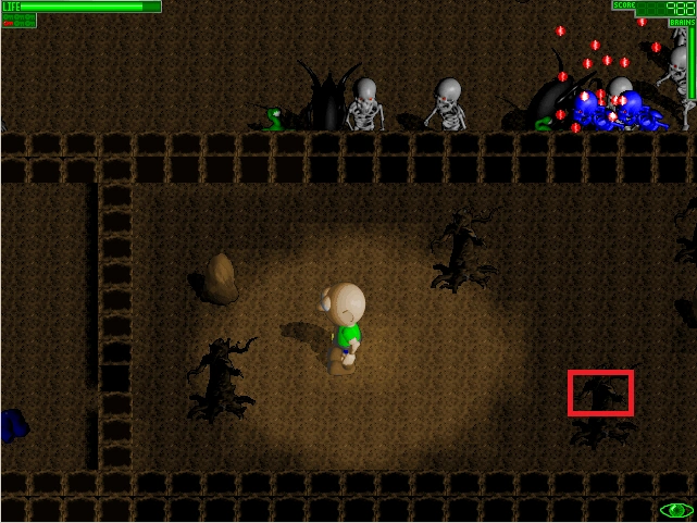 It's another huge complex level again! This time,you are running around collecting blue stones for your "Brains". So go do so, before you go into the following caves.